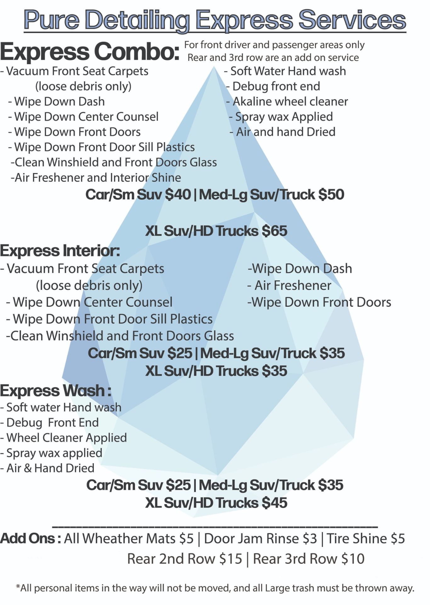 Express services is NOT a detail. But is a great solution for something quick, yet in depth enough to give a good clean feeling.